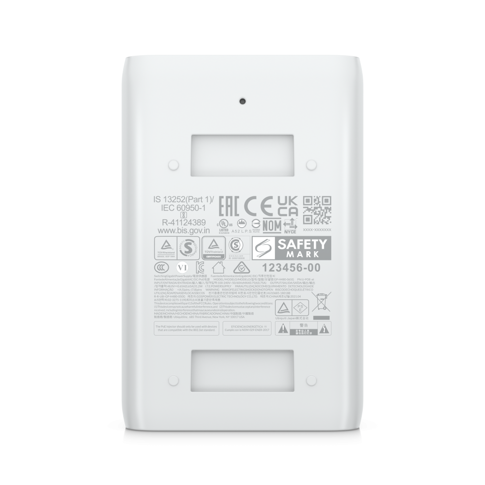 Инжектор PoE+ (U PoE AT) предназначен для питания устройств PoE+. U PoE AT обеспечивает мощность PoE+ до 30 Вт, которую можно использовать для питания UniFi6 Long-Range ( U6 LR ) и других устройств, соответствующих стандарту PoE+. Он также обеспечивает повышенную защиту от скачков напряжения.